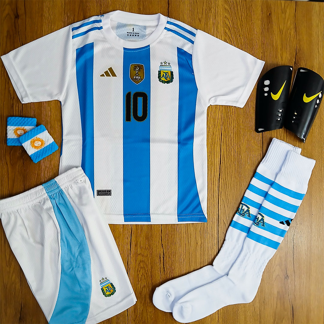 💠ست پیراهن شورت فوتبالی آرژانتین مسی طرح 2026 پسرانه