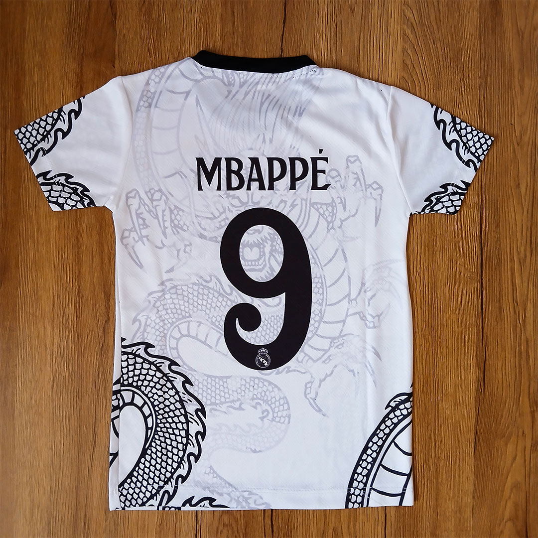 کیت 6 تیکه فوتبالی پسرانه دراگون رئال امباپه شماره ۹ سفید