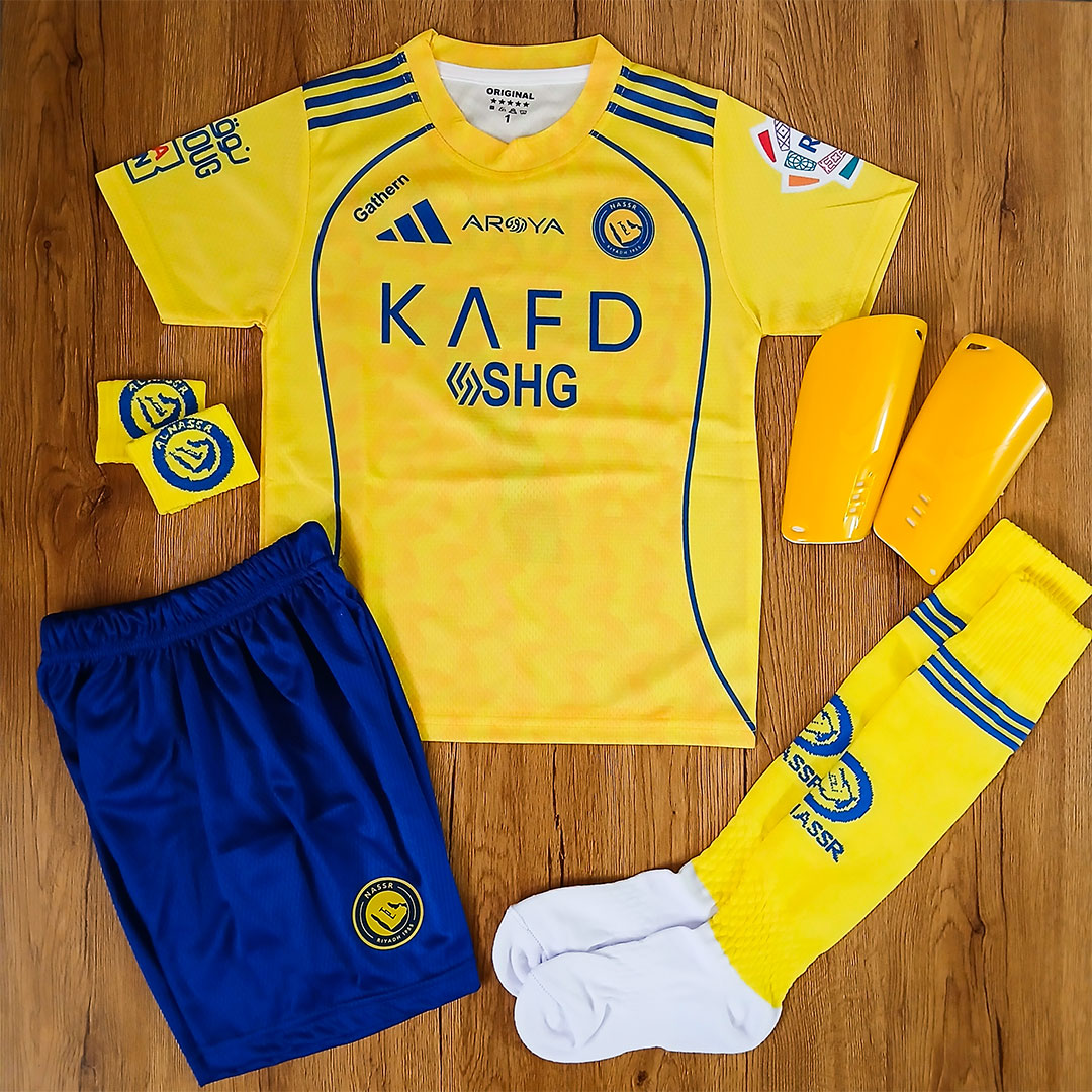 💠ست پیراهن شورت فوتبالی النصر رونالدو رنگ زرد طرح 2026 پسرانه