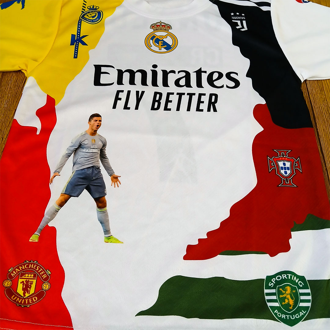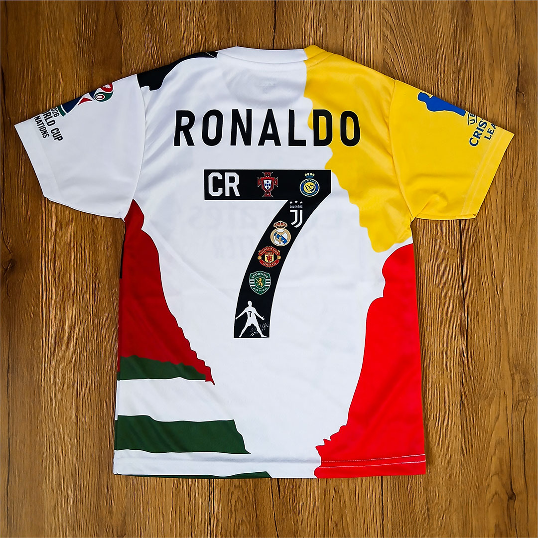 ست پیراهن شورت فوتبالی منتخب رونالدو با تگ روی استین به همراه عکس رونالدو روی لباس ست فوتبالی پسرانه