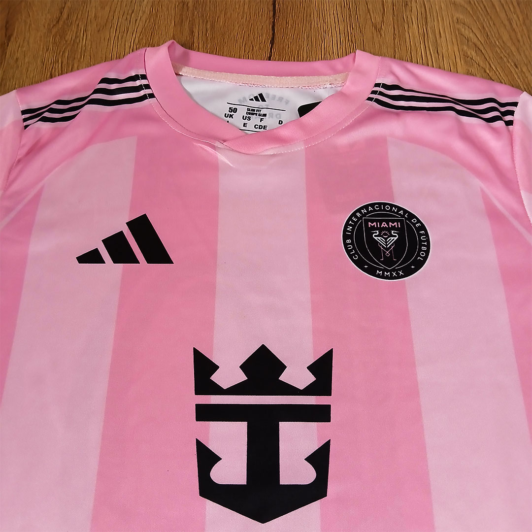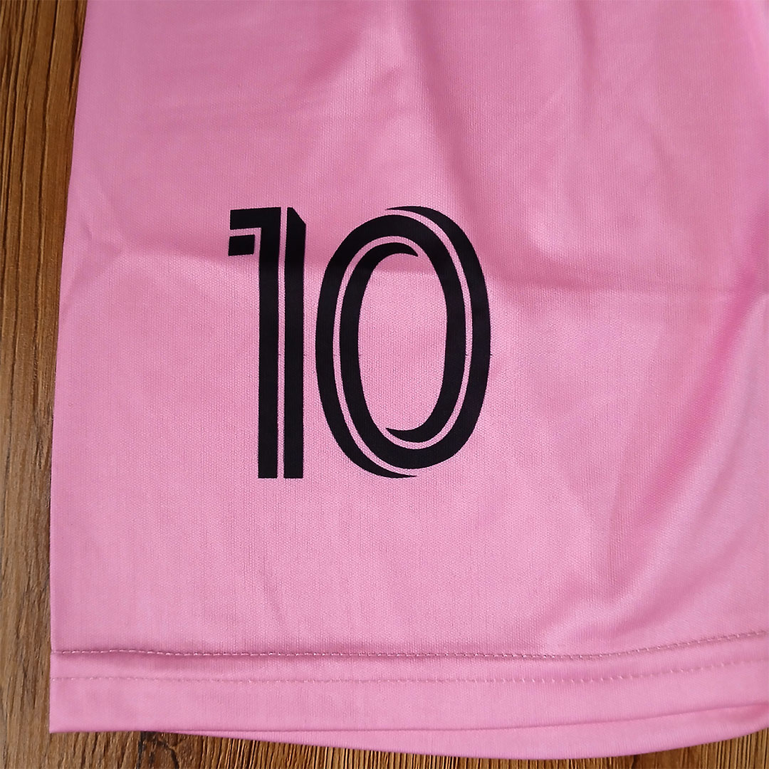 کیت فوتبالی اینترمیامی مسی صورتی: شماره ۱۰ اینترمیامی مسی ، جنس پارچه سوپر فلامنت صاف که این جنس در برابر تغییر رنگ و آبرفت مقاوم بوده و به دلیل نداشتن پرز ضد حساست هست که مناسب کسایی که پوست حساس دارن