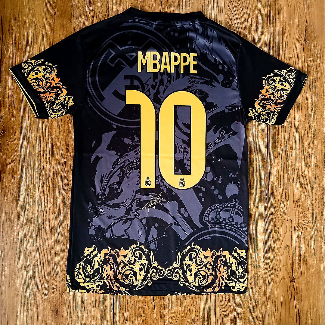 💠ست پیراهن شورت فوتبالی رئال مادرید امباپه طرح دراگون با امضا اختصاصی فول چاپ
