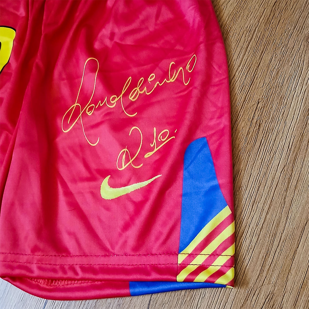 💠ست پیراهن شورت رونالدینیو بارسلونا فول چاپ با امضا اختصاصی