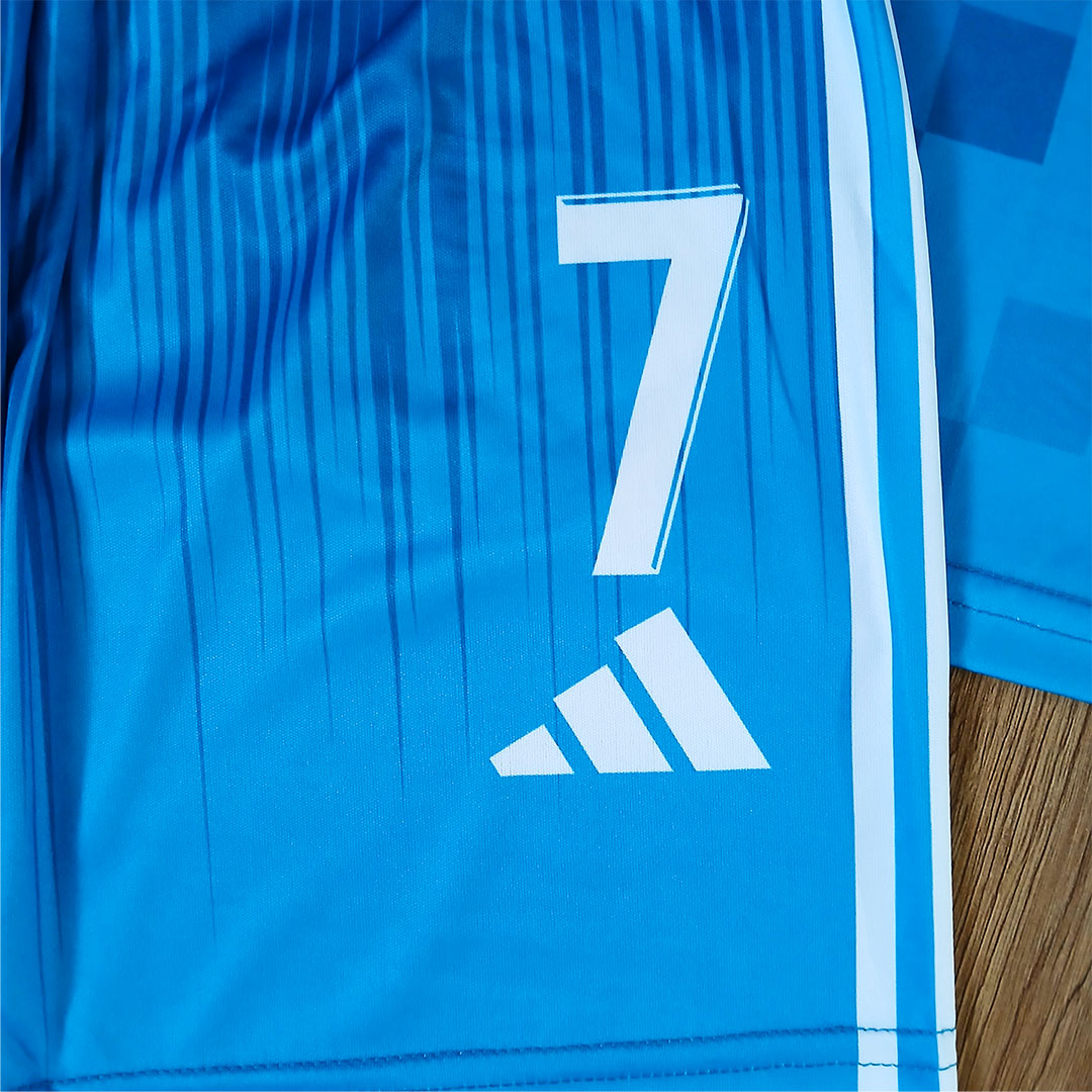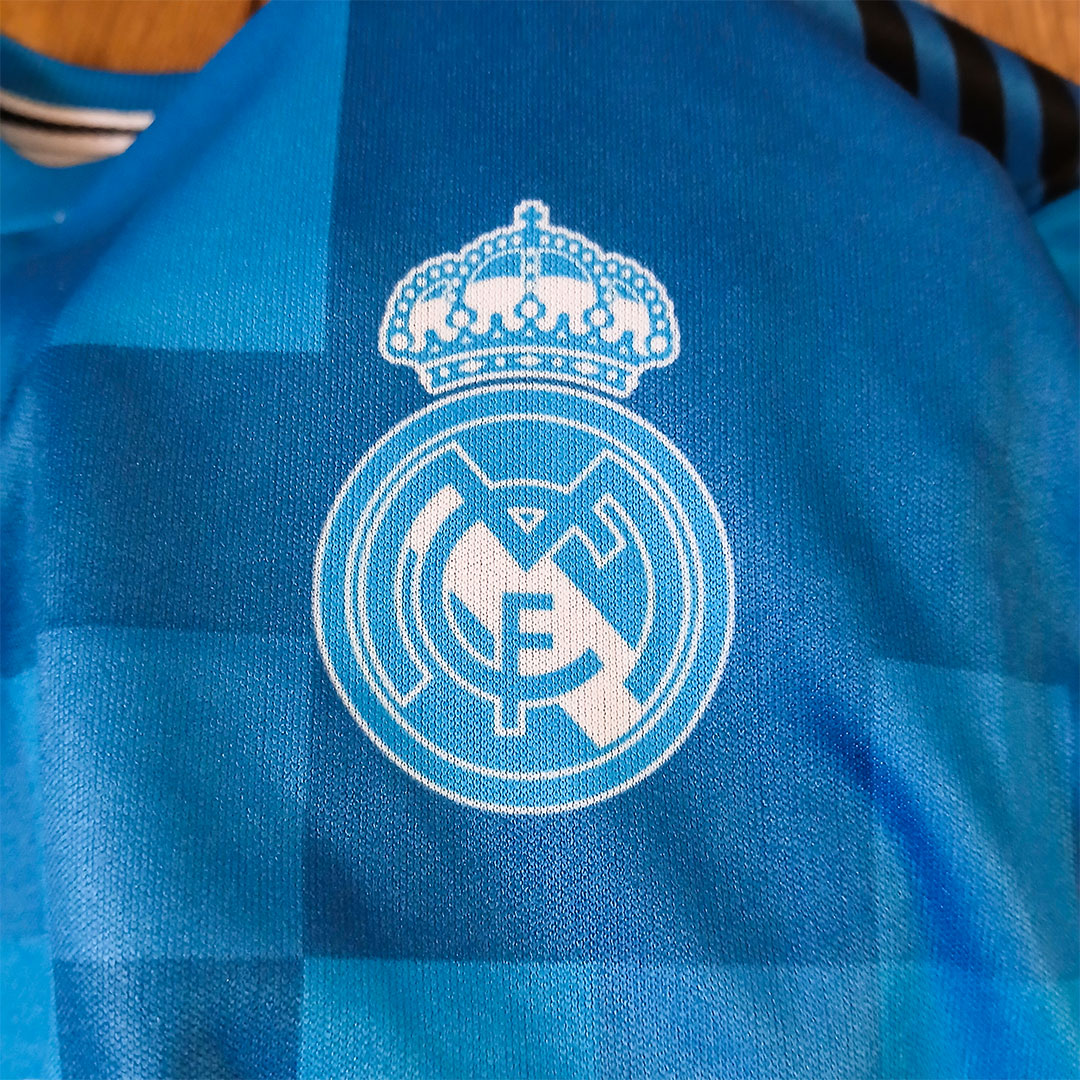 کیت فوتبالی رئال مادرید: شماره 7 رونالدو ، جنس پارچه سوپر فلامنت صاف که این جنس در برابر تغییر رنگ و آبرفت مقاوم بوده و به دلیل نداشتن پرز ضد حساست هست که مناسب کسایی که پوست حساس دارن