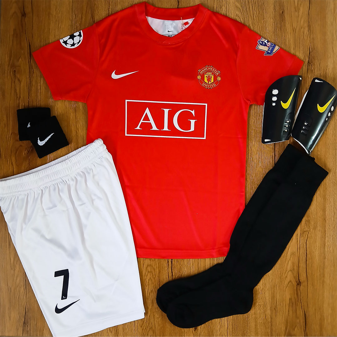 ست فوتبالی منچستریونایتد 2008 طرح نوستالژی رونالدو به همراه یک جفت جوراب ، مچبند و ساقبند